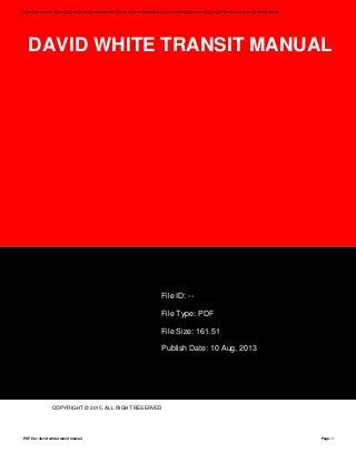 Download online DAVID WHITE TRANSIT MANUAL Paperback ManyBooks